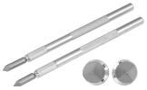 Inserts for making glass knobs for cupboard doors, drawers, boxes and bottle stoppers using #8-32 screw threads. These ¼" (6.35mm) outside diameter, steel inserts come in two lengths. ¾" (19mm) length and ½" (12.7mm) length. Inserts have a hole in only one end and are threaded to accept the included, standard 1" (25.4mm) long, #8-32 screw. Simply screw an insert onto the 12" (30cm) long stainless steel Insert Mandrel and apply molten glass to the insert. After you have made your beautiful knob or stopper, anneal it well. Also available here are 2.5mm threaded Insert Mandrels for 2.5mm threaded jewelry inserts. The overall length is 8". Inserts are not available from us at this time. |