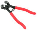 Strong gripping regular hemostats hold wire loops for making buttons, leaves, flowers and other small glass, metal items and components very well, but by their design, they are awkward to hold and rotate like a mandrel. So, we have mounted a 5/32" mandrel to a 5½" hemostat so you can easily hold and rotate your project on center. 12" overall length. |