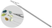 For making glass components at the end of straight or looped wires, commonly used in broaches, bangles and pendants. Made from an extra strong stainless steel alligator clip to provide a secure hold and welded to a 3/16" stainless steel tube. Stainless steel doesn't conduct heat well, so the tool stays cool in your hand. Hollow through and through, so any length of wire can be inserted. Overall length 7½". Accepts non rigid wires up to 16 gage (1.3mm). |