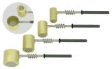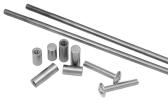 Inserts for making glass knobs for cupboard doors, drawers, boxes and bottle stoppers using #8-32 screw threads. These ¼" (6.35mm) outside diameter, steel inserts come in two lengths. ¾" (19mm) length and ½" (12.7mm) length. Inserts have a hole in only one end and are threaded to accept the included, standard 1" (25.4mm) long, #8-32 screw. Simply screw an insert onto the 12" (30cm) long stainless steel Insert Mandrel and apply molten glass to the insert. After you have made your beautiful knob or stopper, anneal it well. Also available here are 2.5mm threaded Insert Mandrels for 2.5mm threaded jewelry inserts. The overall length is 8". Inserts are not available from us at this time. |