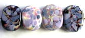 The bead below has both Moody Blue and Purplescent glasses spiraled around a clear glass core. Read about them, Black Diamond, the soon to be released Black Magic and the two new colors, Honey Glaze and Royal Purple (pictured below).