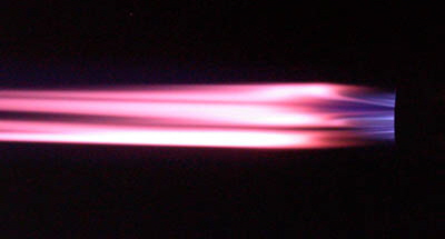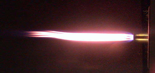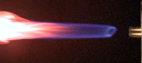3A – Turn the propane down to what you would normally set for a neutral flame and add just enough oxygen to get long white fingers in the flame – it should look like this: