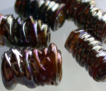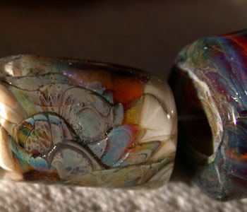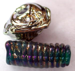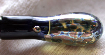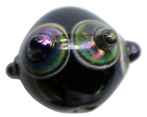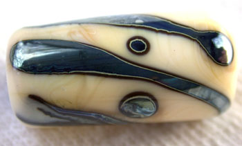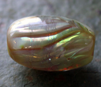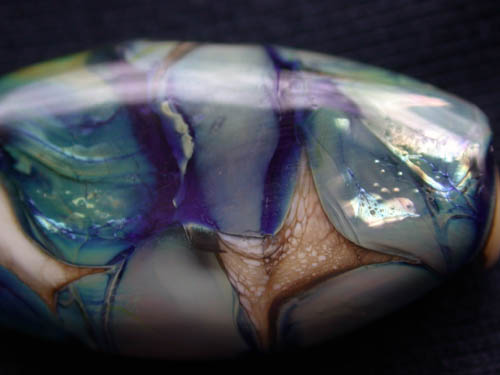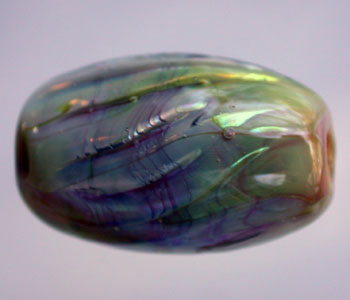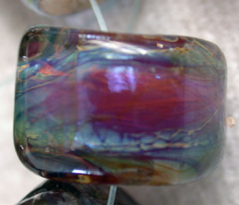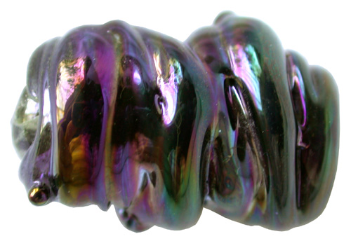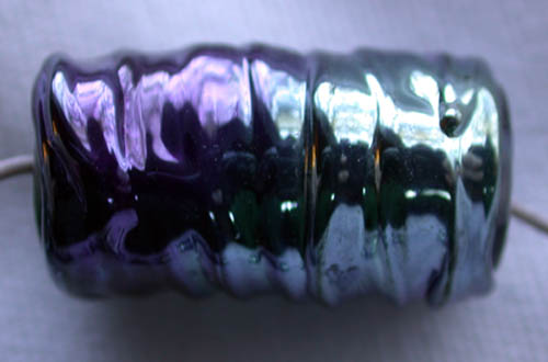2 Shiny Purple/Blue – To get this effect, warm the Moody Blue to a soft, dull orange, but let the color go almost back to cool and then bathe the bead in the purple part of the dragon's breath flame. This is what a bead treated in this way looks like: