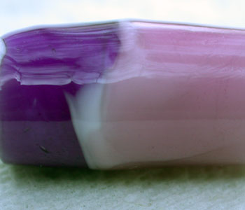 Royal Purple First row: Left: Varying thicknesses of Royal Purple on Effetre White EP-204; Right: Royal Purple on Effetre Ivory EP-264 - Reactive. Second row: Left: Compares Royal Purple to Light Violet ET-41. Right: Compares Royal Purple to Medium Amethyst ET-42.