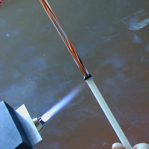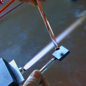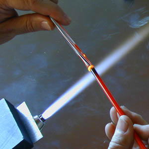 Prepare the end of each glass cane as you did in the first step of the first pen. Fuse them to each other as shown.