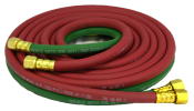 Twin lead hoses for connecting torch to oxygen regulator or concentrator and fuel gas regulator. Grade T, rated for all fuel gasses. ¼" X 12½' BB Hose Set pictured.